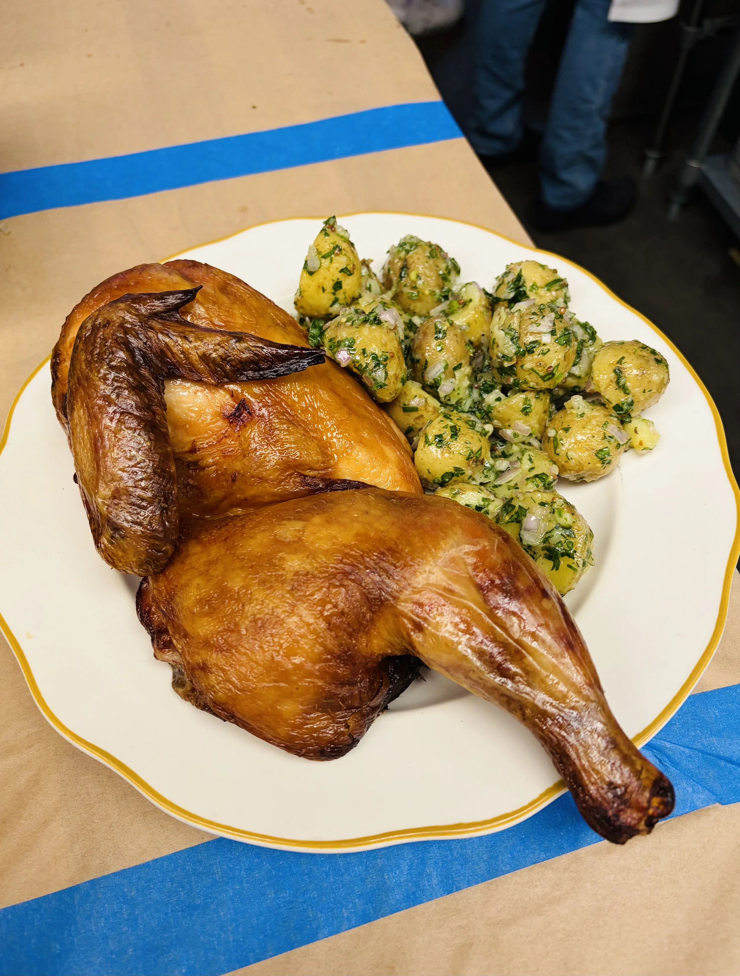 1/2 Roasted Chicken with Mustardy Potato Salad
